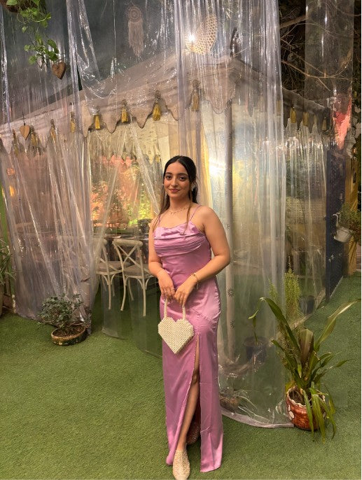 Elevate your evening wardrobe with this luxurious satin slip dress, designed to exude effortless chic and sophisticated allure. Perfect for night occasions, its feminine silhouette and sultry sheen create a look that/s both sexy and elegant. The dress features an intriguing front design that adds a unique twist to the classic slip style, while adjustable straps ensure a customised fit for maximum comfort. Whether you're attending a special event or a night out, this dress will make you feel truly special - an absolute must have for every wardrobe.
